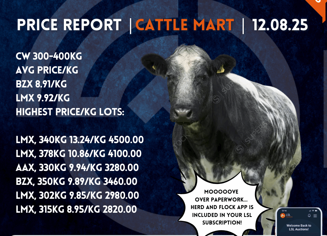 Tuesday selected Cattle Mart Price Report: Copyright LSL Auctions