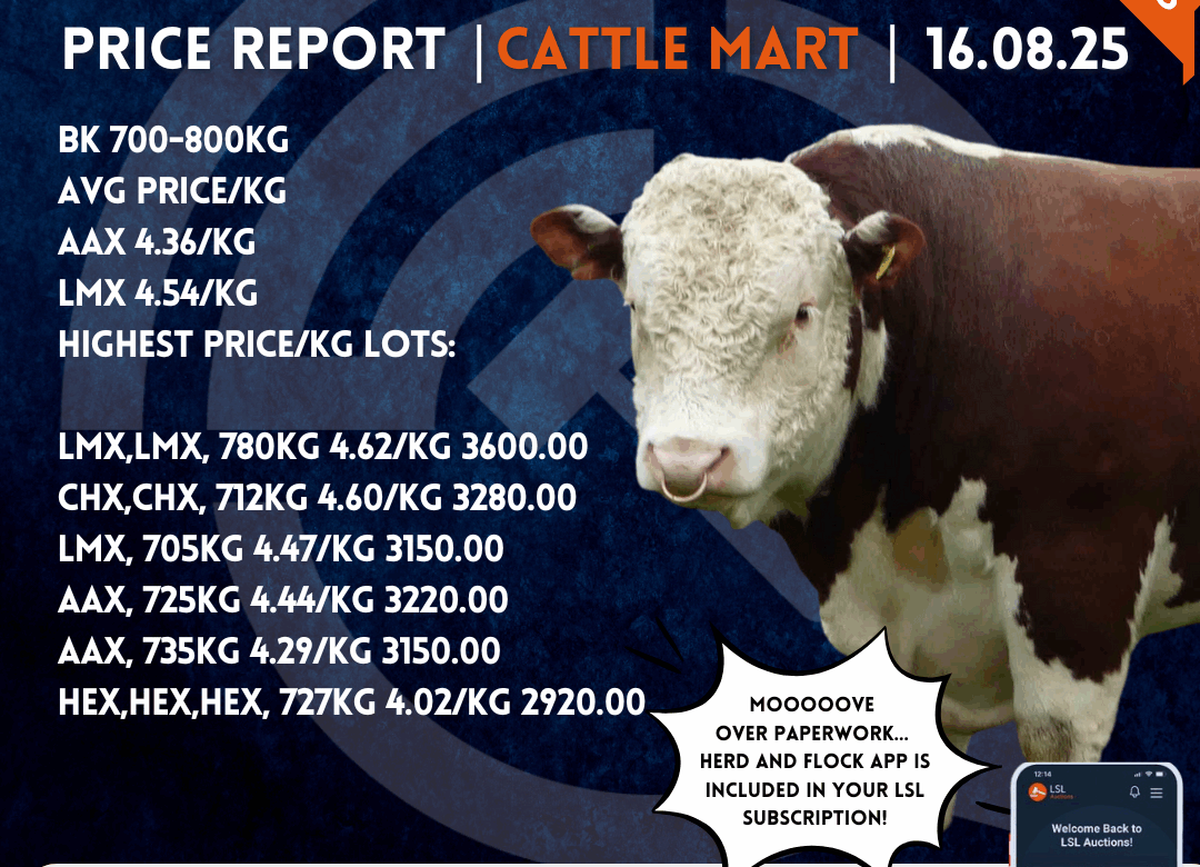 Saturday selected Cattle Mart Price Report: Copyright LSL Auctions
