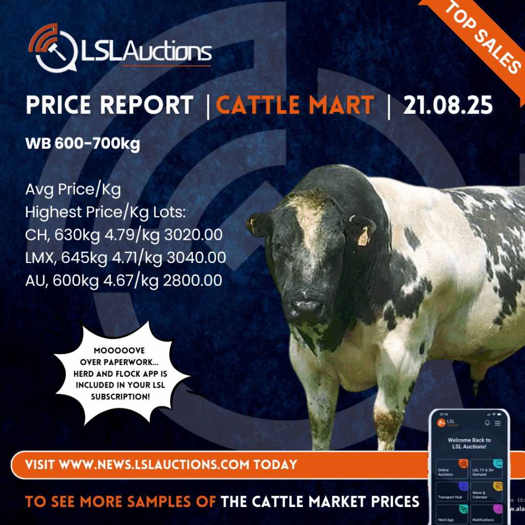Thursday selected Cattle Mart Price Report: Copyright LSL Auctions