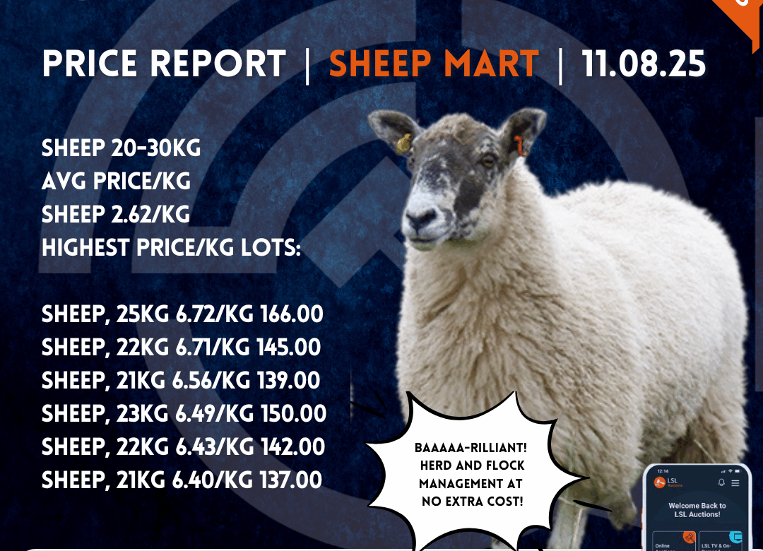 Monday selected Sheep Mart Price Report: Copyright LSL Auctions