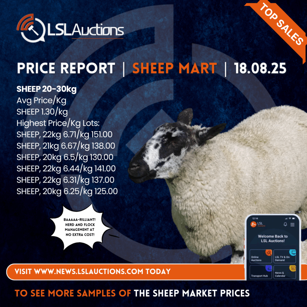 Monday selected Sheep Mart Price Report: Copyright LSL Auctions