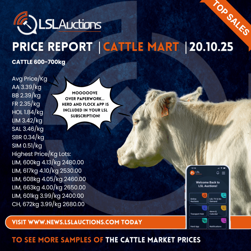 Monday selected Cattle Mart Price Report: Copyright LSL Auctions
