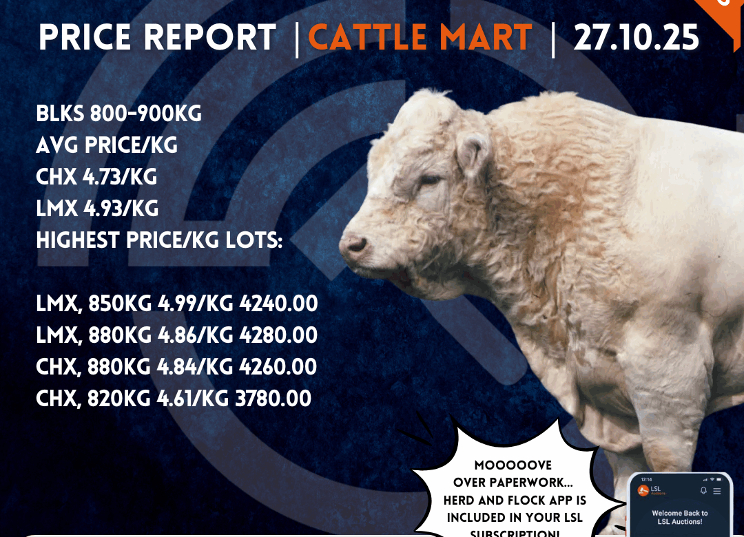 Monday selected Cattle Mart Price Report: Copyright LSL Auctions
