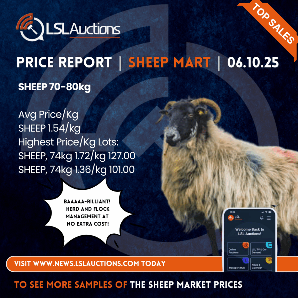 Monday selected Sheep Mart Price Report: Copyright LSL Auctions
