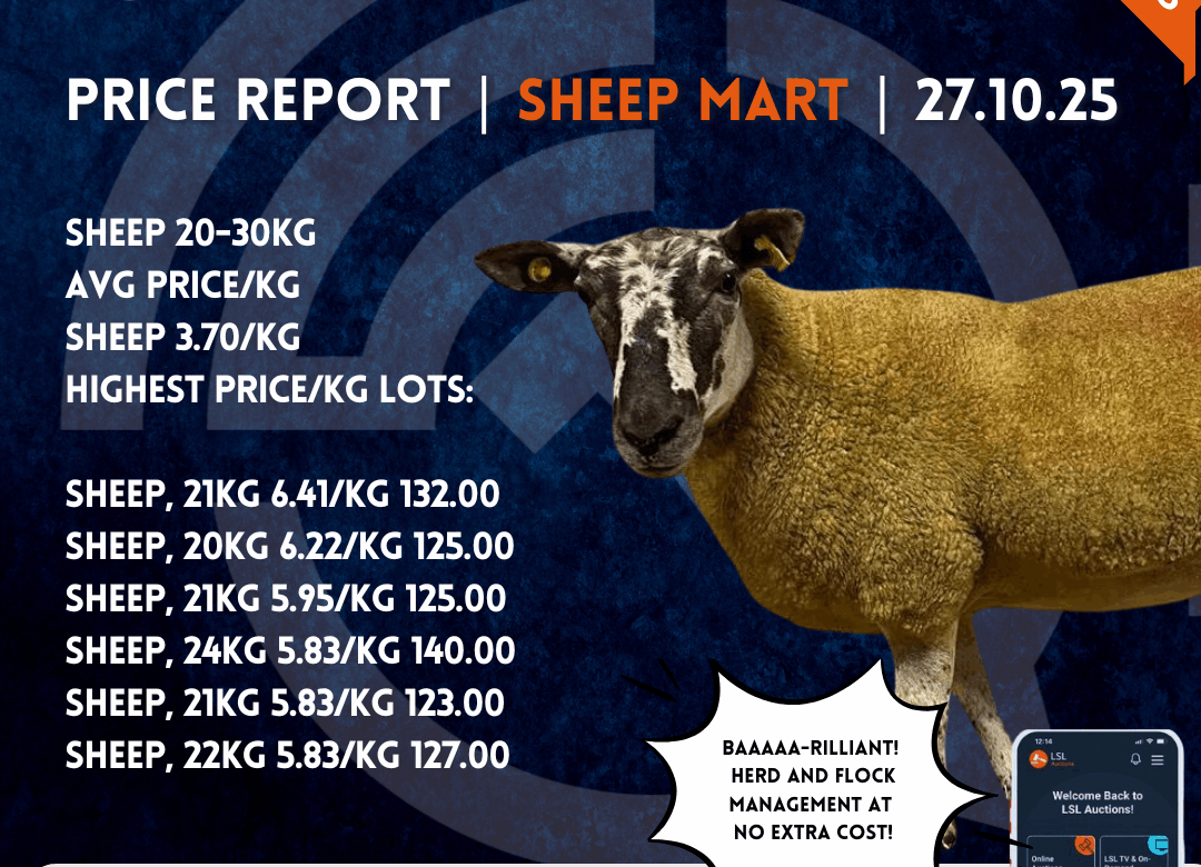 Monday selected Sheep Mart Price Report: Copyright LSL Auctions