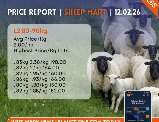 Friday Sheep Mart Price Report | Copyright © LSL Auctions LAM 20-30kg Fri 6 Mar Avg Price/KgLAM 5.44/kgHighest Price/Kg Lots:LAM, 22kg 6.62/kg 143.00LAM, 22kg 6.40/kg 139.50LAM, 25kg 6.33/kg 157.00LAM, 20kg 6.25/kg 125.00LAM, 26kg 6.23/kg 160.00LAM, 26kg 5.92/kg 155.00To see more samples of Sheep Market Prices, visit: https://www.lslauctions.com/Don’t miss out on the latest news and updates from LSL Auctions! Sign up now to get exclusive access to our Facebook page.🐑 Herd and Flock management app…