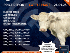 Agriculture/Livestock Auction online Cattlle News LSL Select Price Report – Cattle Mart – 25/09/2025 Thursday selected Cattle Mart Price Report: Copyright LSL Auctions CA 300-400kgAvg Price/KgCHX 5.04/kgLMX 5.57/kg Highest Price/Kg Lots:LMX,LMX, 300kg 6/kg 1800.00CHX, 315kg… access_time7 months ago FacebookTwitterGoogle+LinkedInPinterestshare Agriculture/Livestock Auction online Cattlle News LSL Select Price Report – Cattle Mart – 24/09/2025 Wednesday selected Cattle Mart Price Report: Copyright LSL Auctions WBU 300-400kg Avg Price/KgAA 4.00/kgAAX 3.89/kgAAX,AAX 4.17/kgAUX 4.63/kgBBX 4.18/kgCH 6.14/kgCHX 5.48/kgFR 3.17/kgFR,FRX… access_time7 months ago FacebookTwitterGoogle+LinkedInPinterestshare Agriculture/Livestock Auction online News Sheep LSL Select Price Report – Sheep Mart – 24/09/2025 Wednesday selected Sheep Mart Price Report: Copyright LSL Auctions LAMB 20-30kg Avg Price/KgLAMB 3.09/kg Highest Price/Kg Lots:LAMB, 29kg 4.28/kg 124.00LAMB, 22kg… access_time7 months ago FacebookTwitterGoogle+LinkedInPinterestshare Agriculture/Livestock Auction online News Sheep LSL Select Price Report – Sheep Mart – 23/09/2025 Tuesday selected Sheep Mart Price Report: Copyright LSL Auctions SHEEP 60-70kgAvg Price/KgSHEEP 3.11/kgHighest Price/Kg Lots:SHEEP, 65kg 6.03/kg 390.00SHEEP, 63kg 5.08/kg 320.00SHEEP,… access_time7 months ago FacebookTwitterGoogle+LinkedInPinterestshare Posts pagination navigate_beforePrev 1 … 10 11 12 … 220 Nextnavigate_next