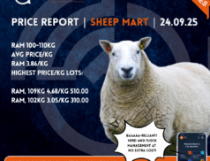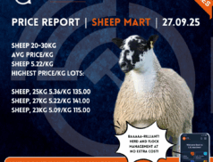 Agriculture/Livestock Auction online News Sheep LSL Select Price Report – Sheep Mart – 23/09/2025 Tuesday selected Sheep Mart Price Report: Copyright LSL Auctions SHEEP 60-70kgAvg Price/KgSHEEP 3.11/kgHighest Price/Kg Lots:SHEEP, 65kg 6.03/kg 390.00SHEEP, 63kg 5.08/kg 320.00SHEEP,… access_time7 months ago FacebookTwitterGoogle+LinkedInPinterestshare Posts pagination navigate_beforePrev 1 … 10 11 12 … 220 Nextnavigate_next