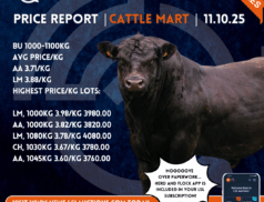 Agriculture/Livestock Auction online Cattlle News LSL Select Price Report – Cattle Mart – 09/10/2025 Thursday selected Cattle Mart Price Report: Copyright LSL Auctions CA 300-400kg Avg Price/KgAAX 3.97/kgLMX 5.15/kg Highest Price/Kg Lots:LMX,LMX, 318kg 5.83/kg 1850.00BBX,LMX, 318kg… access_time7 months ago FacebookTwitterGoogle+LinkedInPinterestshare Agriculture/Livestock Auction online News Sheep LSL Select Price Report – Sheep Mart – 08/10/2025 Wednesday selected Sheep Mart Price Report: Copyright LSL Auctions LAMB 40-50kgAvg Price/KgLAMB 3.06/kg Highest Price/Kg Lots:LAMB, 43kg 3.96/kg 169.00LAMB, 42kg 3.52/kg… access_time7 months ago FacebookTwitterGoogle+LinkedInPinterestshare Agriculture/Livestock Auction online Cattlle News LSL Select Price Report – Cattle Mart – 08/10/2025 Wednesday selected Cattle Mart Price Report: Copyright LSL Auctions CATTLE 500-600kgAvg Price/KgAA 2.98/kgBB 3.58/kgCH 3.71/kgFR 1.29/kgHOL 0.36/kgLIM 3.62/kgSIM 2.84/kg Highest Price/Kg… access_time7 months ago FacebookTwitterGoogle+LinkedInPinterestshare Agriculture/Livestock Auction online News Sheep LSL Select Price Report – Sheep Mart – 06/10/2025 Monday selected Sheep Mart Price Report: Copyright LSL Auctions LAMB 40-50kgAvg Price/KgLAMB 2.85/kg Highest Price/Kg Lots:LAMB, 48kg 4.17/kg 200.00LAMB, 47kg 3.40/kg… access_time7 months ago FacebookTwitterGoogle+LinkedInPinterestshare Agriculture/Livestock Auction online Cattlle News LSL Select Price Report – Cattle Mart – 06/10/2025 Monday selected Cattle Mart Price Report: Copyright LSL Auctions CATTLE 400-500kgAvg Price/KgCATTLE 5.54/kg Highest Price/Kg Lots:CATTLE, 450kg 9.67/kg 4350.00CATTLE, 465kg 8.17/kg… access_time7 months ago FacebookTwitterGoogle+LinkedInPinterestshare Agriculture/Livestock Auction online News Sheep LSL Select Price Report – Sheep Mart – 04/10/2025 Saturday selected Sheep Mart Price Report: Copyright LSL Auctions L4 90-100kgAvg Price/Kg2.24/kg Highest Price/Kg Lots:, 98kg 2.24/kg 220.00, 98kg 2.24/kg 220.00L4… access_time7 months ago FacebookTwitterGoogle+LinkedInPinterestshare Agriculture/Livestock Auction online Cattlle News LSL Select Price Report – Cattle Mart – 04/10/2025 Saturday selected Cattle Mart Price Report: Copyright LSL Auctions CATTLE 300-400kgAvg Price/KgCATTLE 2.49/kg Highest Price/Kg Lots:CATTLE, 385kg 4.96/kg 1910.00CATTLE, 375kg 0.03/kg… access_time7 months ago FacebookTwitterGoogle+LinkedInPinterestshare Agriculture/Livestock Auction online News Sheep LSL Select Price Report – Sheep Mart – 03/10/2025 Friday selected Sheep Mart Price Report: Copyright LSL Auctions L2 50-60kgAvg Price/Kg2.31/kg Highest Price/Kg Lots:, 60kg 5.11/kg 304.00, 58kg 4.41/kg 258.00,… access_time7 months ago FacebookTwitterGoogle+LinkedInPinterestshare Agriculture/Livestock Auction online Cattlle News LSL Select Price Report – Cattle Mart – 03/10/2025 Friday selected Cattle Mart Price Report: Copyright LSL Auctions WH 300-400kgAvg Price/KgCHX 4.84/kgHEX 4.00/kgLMX 4.81/kgLMX,LMX 4.91/kg Highest Price/Kg Lots:LMX, 320kg 5.91/kg… access_time7 months ago FacebookTwitterGoogle+LinkedInPinterestshare Agriculture/Livestock Auction online News Sheep LSL Select Price Report – Sheep Mart – 02/10/2025 Thursday selected Sheep Mart Price Report: Copyright LSL Auctions L2 50-60kg Avg Price/Kg2.31/kg Highest Price/Kg Lots:, 60kg 5.11/kg 304.00, 58kg 4.41/kg 258.00,… access_time7 months ago FacebookTwitterGoogle+LinkedInPinterestshare Agriculture/Livestock Auction online Cattlle News LSL Select Price Report – Cattle Mart – 02/10/2025 Thursday selected Cattle Mart Price Report: Copyright LSL Auctions WH 300-400kgAvg Price/KgCHX 4.84/kgHEX 4.00/kgLMX 4.81/kgLMX,LMX 4.91/kg Highest Price/Kg Lots:LMX, 320kg 5.91/kg… access_time7 months ago FacebookTwitterGoogle+LinkedInPinterestshare Agriculture/Livestock Auction online News Sheep LSL Select Price Report – Sheep Mart – 01/10/2025 Wednesday selected Sheep Mart Price Report: Copyright LSL Auctions EWE 70-80kgAvg Price/KgEWE 2.04/kgHighest Price/Kg Lots:EWE, 72kg 2.87/kg 208.00EWE, 74kg 2/kg 148.00EWE,… access_time7 months ago FacebookTwitterGoogle+LinkedInPinterestshare Agriculture/Livestock Auction online Cattlle News LSL Select Price Report – Cattle Mart – 01/10/2025 Wednesday selected Cattle Mart Price Report: Copyright LSL Auctions CATTLE 500-600kgAvg Price/KgCATTLE 3.87/kgHighest Price/Kg Lots:CATTLE, 590kg 4.20/kg 2480.00CATTLE, 575kg 4.16/kg 2390.00CATTLE,… access_time7 months ago FacebookTwitterGoogle+LinkedInPinterestshare Agriculture/Livestock Auction online News Sheep LSL Select Price Report – Sheep Mart – 30/06/2025 Tuesday selected Sheep Mart Price Report: Copyright LSL Auctions LAMBS 50-60kgAvg Price/KgLAMBS 2.37/kg Highest Price/Kg Lots:LAMBS, 58kg 3.02/kg 175.00LAMBS, 58kg 1.72/kg… access_time7 months ago FacebookTwitterGoogle+LinkedInPinterestshare Agriculture/Livestock Auction online Cattlle News LSL Select Price Report – Cattle Mart – 30/09/2025 Tuesday selected Cattle Mart Price Report: Copyright LSL Auctions BLK 400-500kgAvg Price/KgAAX 4.28/kgAAX,AAX 4.10/kgAAX,AAX,AAX 4.06/kgAYX 3.33/kgBBX 4.35/kgBBX,BBX 4.19/kgBBX,BBX,BBX 4.16/kgCH 4.79/kgCHX 4.99/kgCHX,CHX… access_time7 months ago FacebookTwitterGoogle+LinkedInPinterestshare Agriculture/Livestock Auction online News Sheep LSL Select Price Report – Sheep Mart – 29/09/2025 Monday selected Sheep Mart Price Report: Copyright LSL Auctions SHEEP 20-30kgAvg Price/KgSHEEP 3.00/kg Highest Price/Kg Lots:SHEEP, 23kg 7/kg 161.00SHEEP, 24kg 6.89/kg… access_time7 months ago FacebookTwitterGoogle+LinkedInPinterestshare Agriculture/Livestock Auction online Cattlle News LSL Select Price Report – Cattle Mart – 29/09/2025 Monday selected Cattle Mart Price Report: Copyright LSL Auctions OS 400-500kgAvg Price/KgAAX 5.03/kgAAX,LMX 5.11/kgLMX 5.17/kg Highest Price/Kg Lots:LMX, 455kg 5.67/kg 2580.00SIX,LMX,… access_time7 months ago FacebookTwitterGoogle+Linke